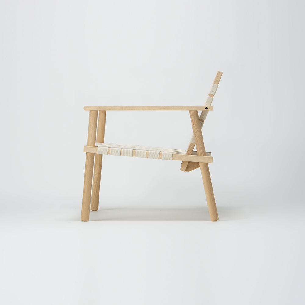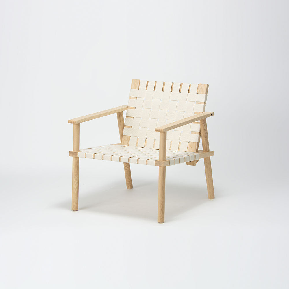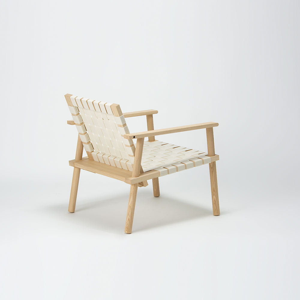 に、ウェービングテープを張り、木の素材感と快適な座り心地を両立したデザイン。 背と座の各パネルと4本の脚は分解が可能なため、それぞれパーツごとに修理ができ、メンテネンス性にも優れています。