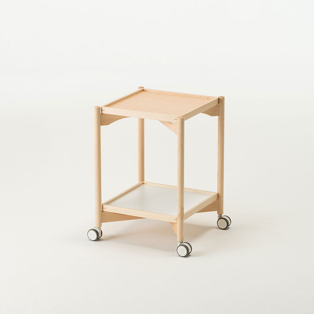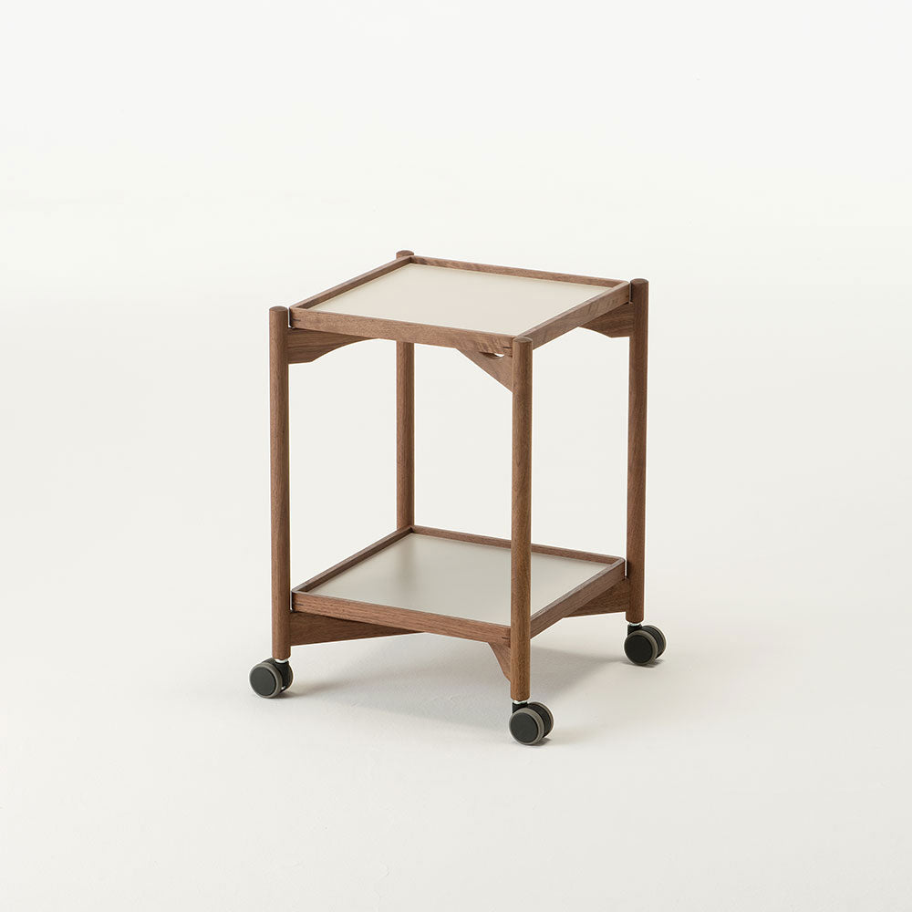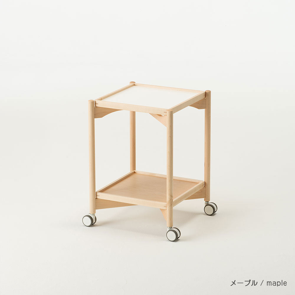 トレーが2段セットされてサイドテーブルとしてや、ワゴンとして使えるテーブルです。