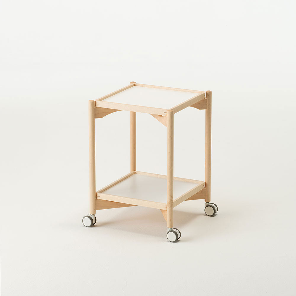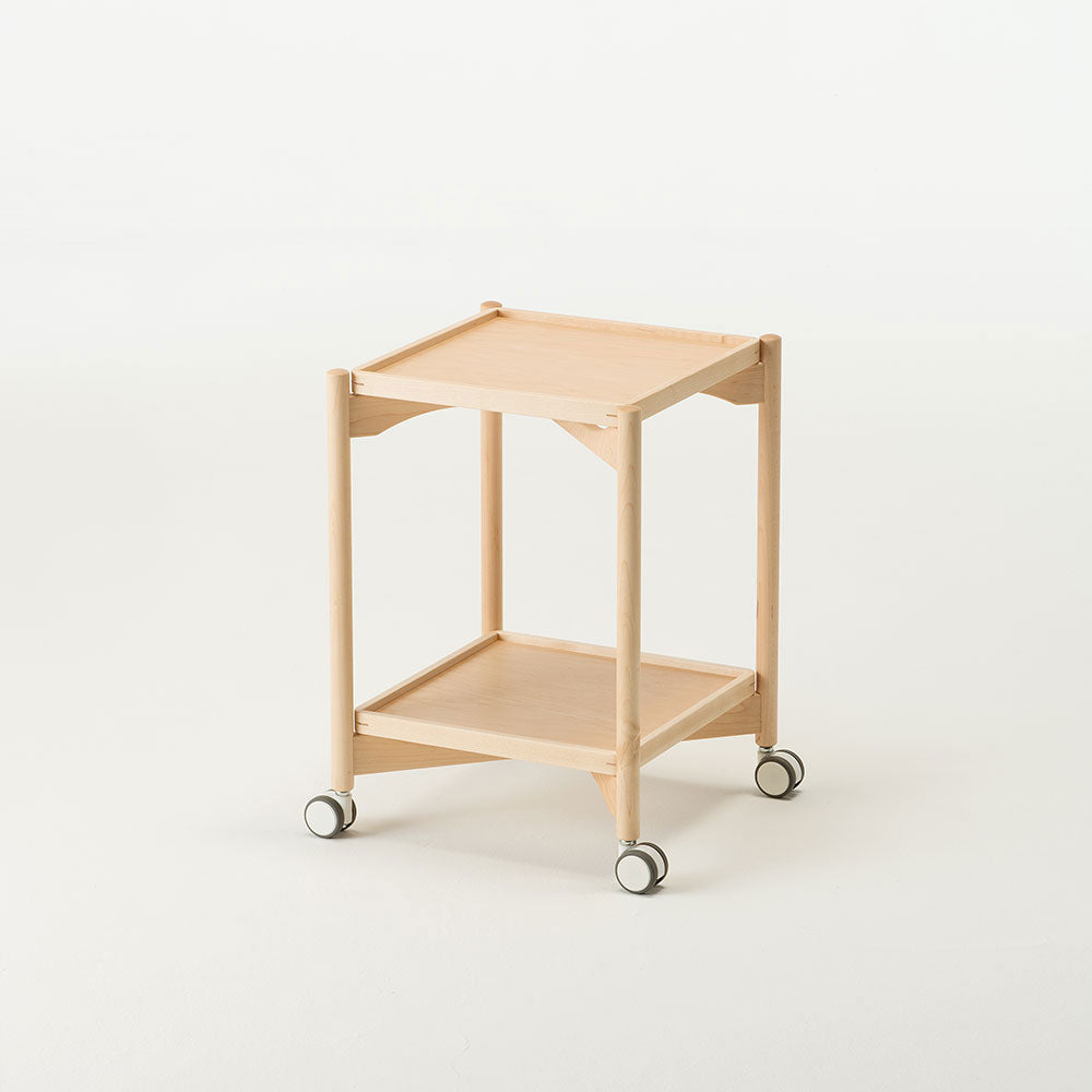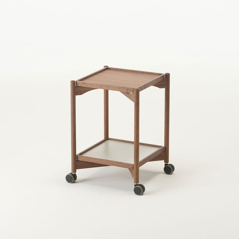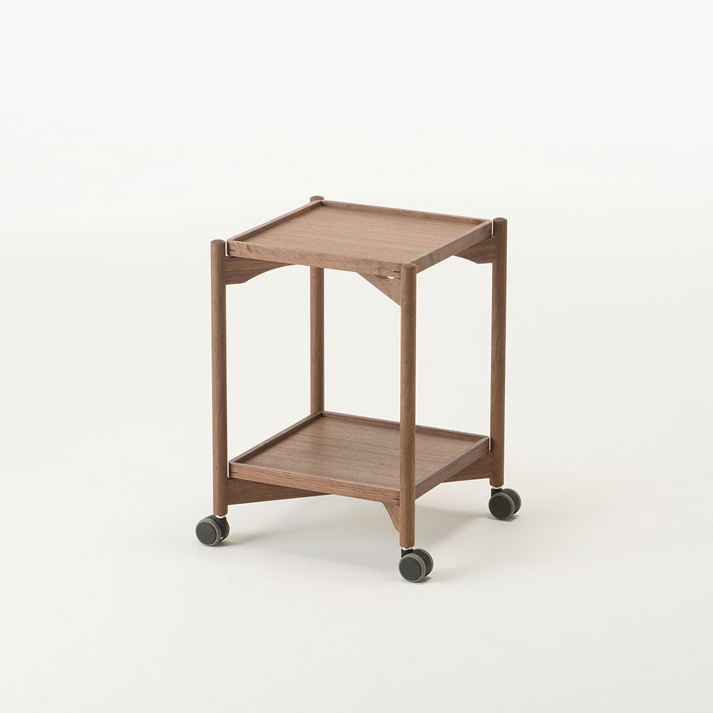 トレーが2段セットされてサイドテーブルとしてや、ワゴンとして使えるテーブルです。