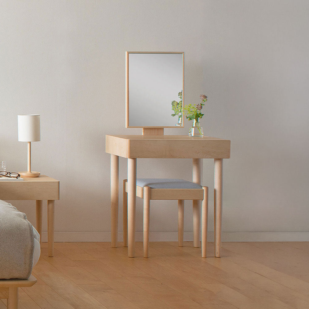 朝の忙しい時間にはドレッサーとして身支度をスムーズに、昼間はワークスペースとして集中できる環境に。夜には、読書やちょっとした作業にも使える、暮らしに寄り添うデスクです。