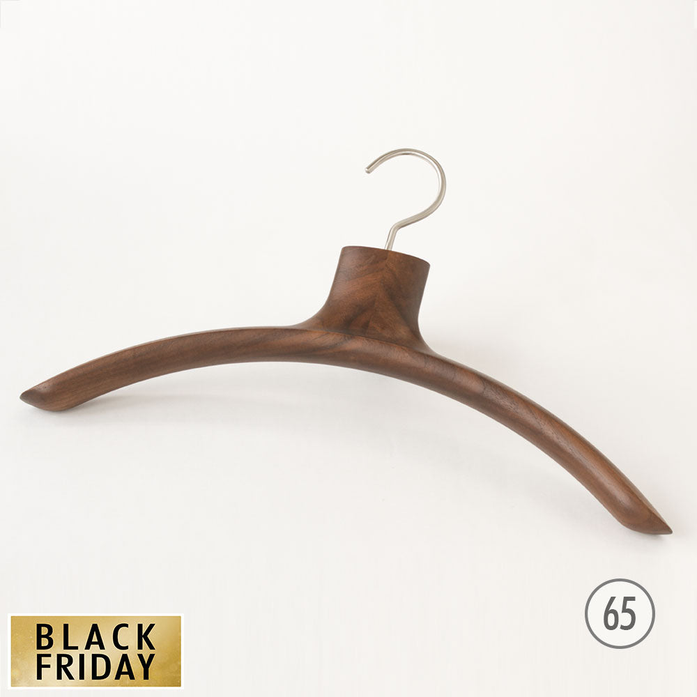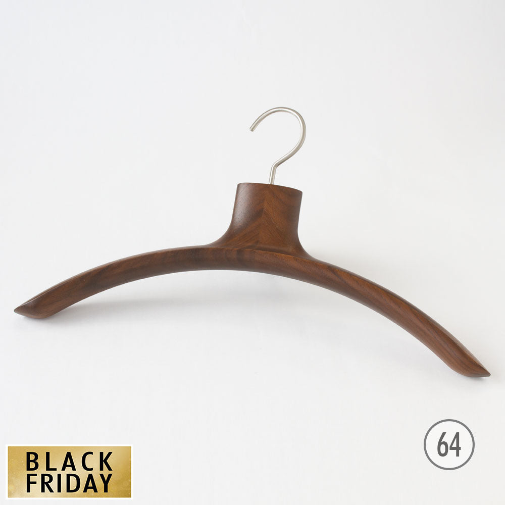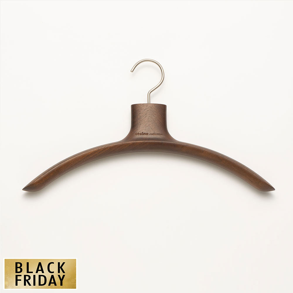ウォルナット材の上質感を活かしたcosine collection。曲線が彫刻的な印象のairs ハンガー。加工精度と接着技術が求められるフィンガージョイント加工でつなぎ、彫刻的な曲線に削り出しひとつひとつ丁寧に仕上げました。